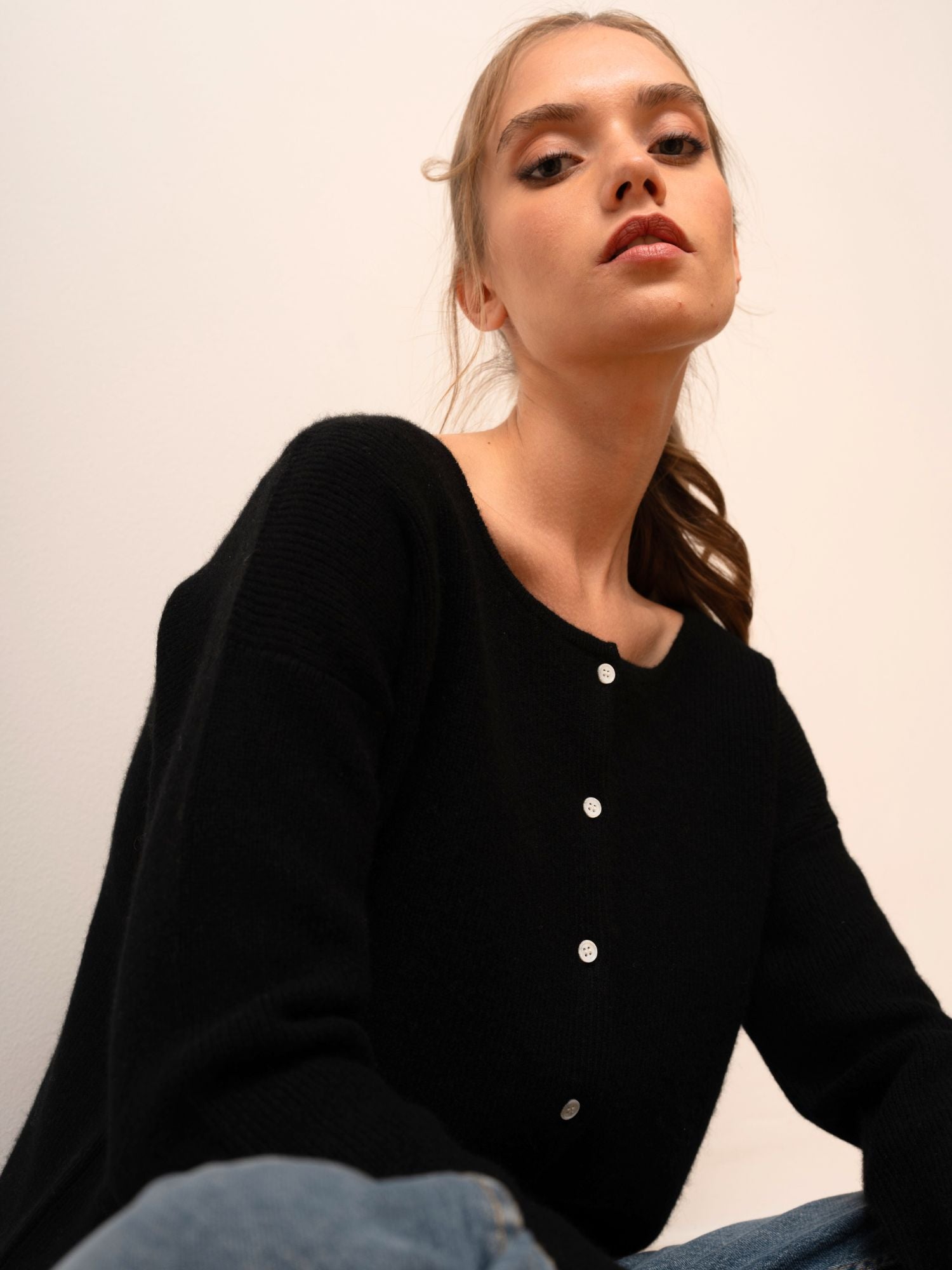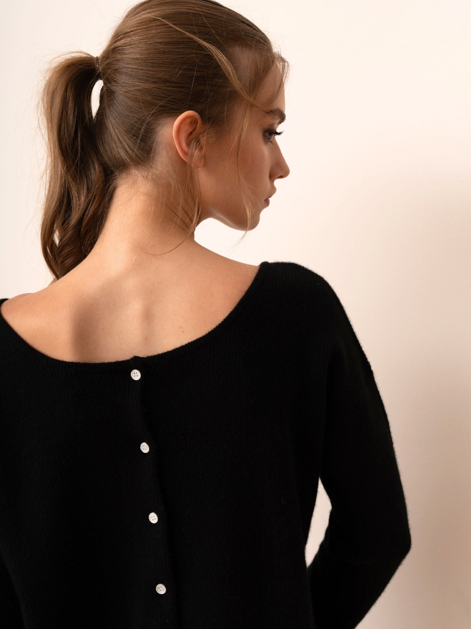 Sie können es als Strickjacke tragen oder es für einen eleganteren Look auf links drehen und nach hinten zuknöpfen.