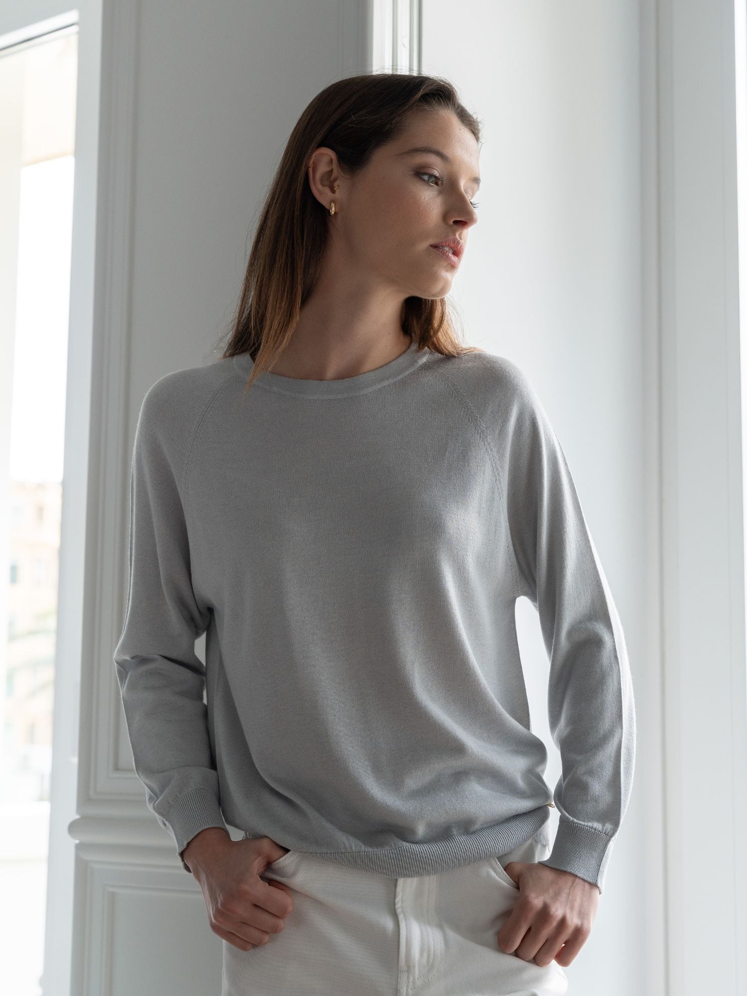 Mit Rundhalsausschnitt und Raglanärmeln ist es ein sehr stylisches und schlichtes Kleidungsstück, einfach zu tragen und perfekt für jede Jahreszeit.