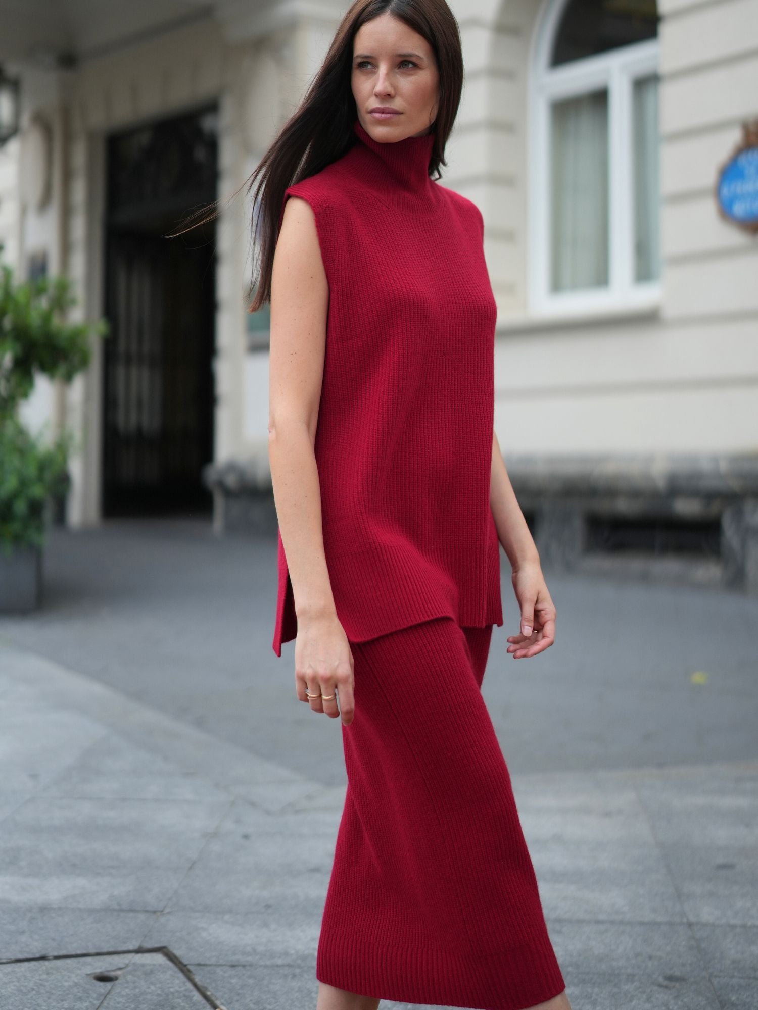 Ein wunderschöner ärmelloser Rollkragenpullover aus Kaschmir und Wolle.