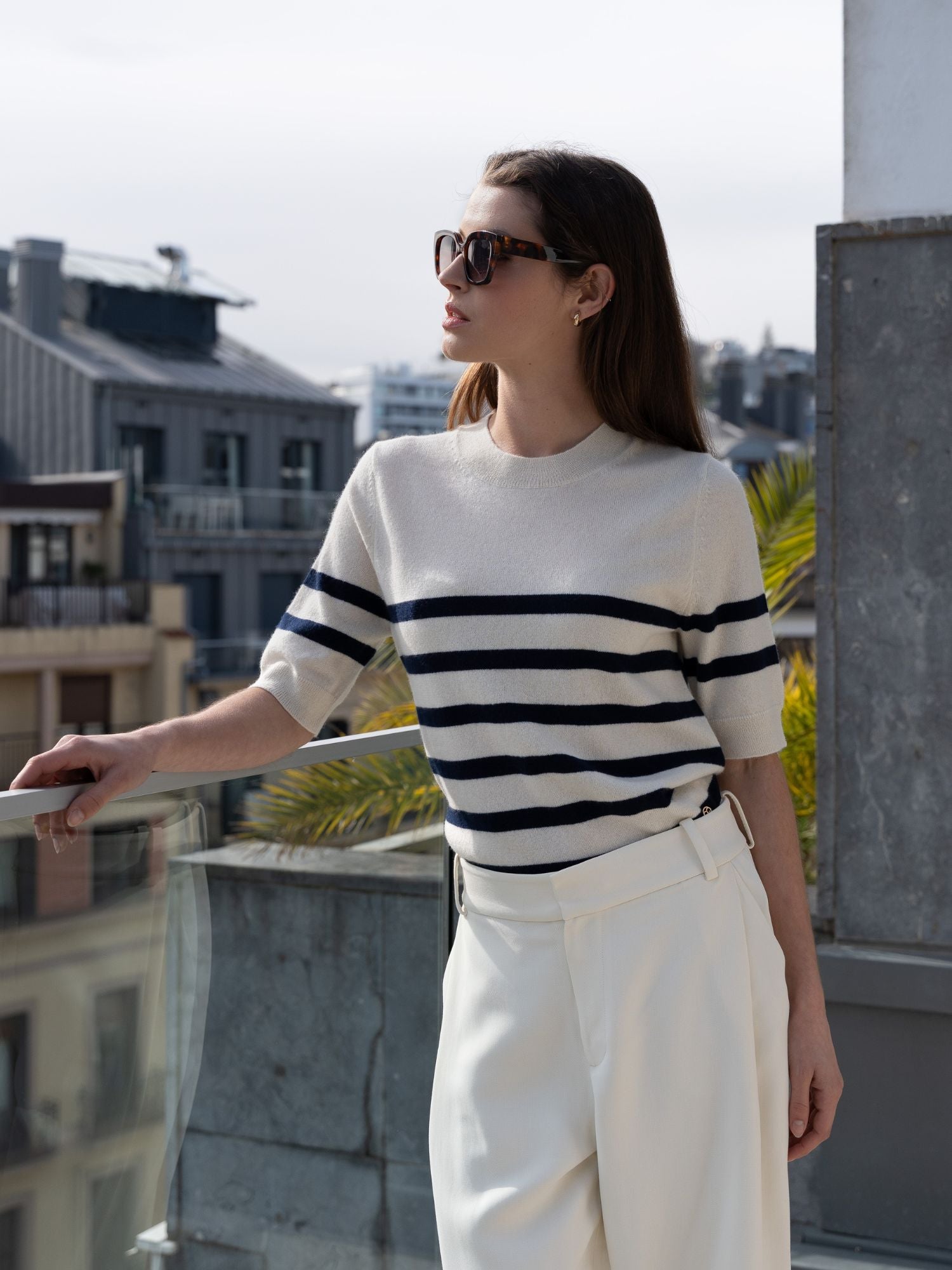 Ein luxuriöser, feiner Kurzarmpullover aus reinem Kaschmir