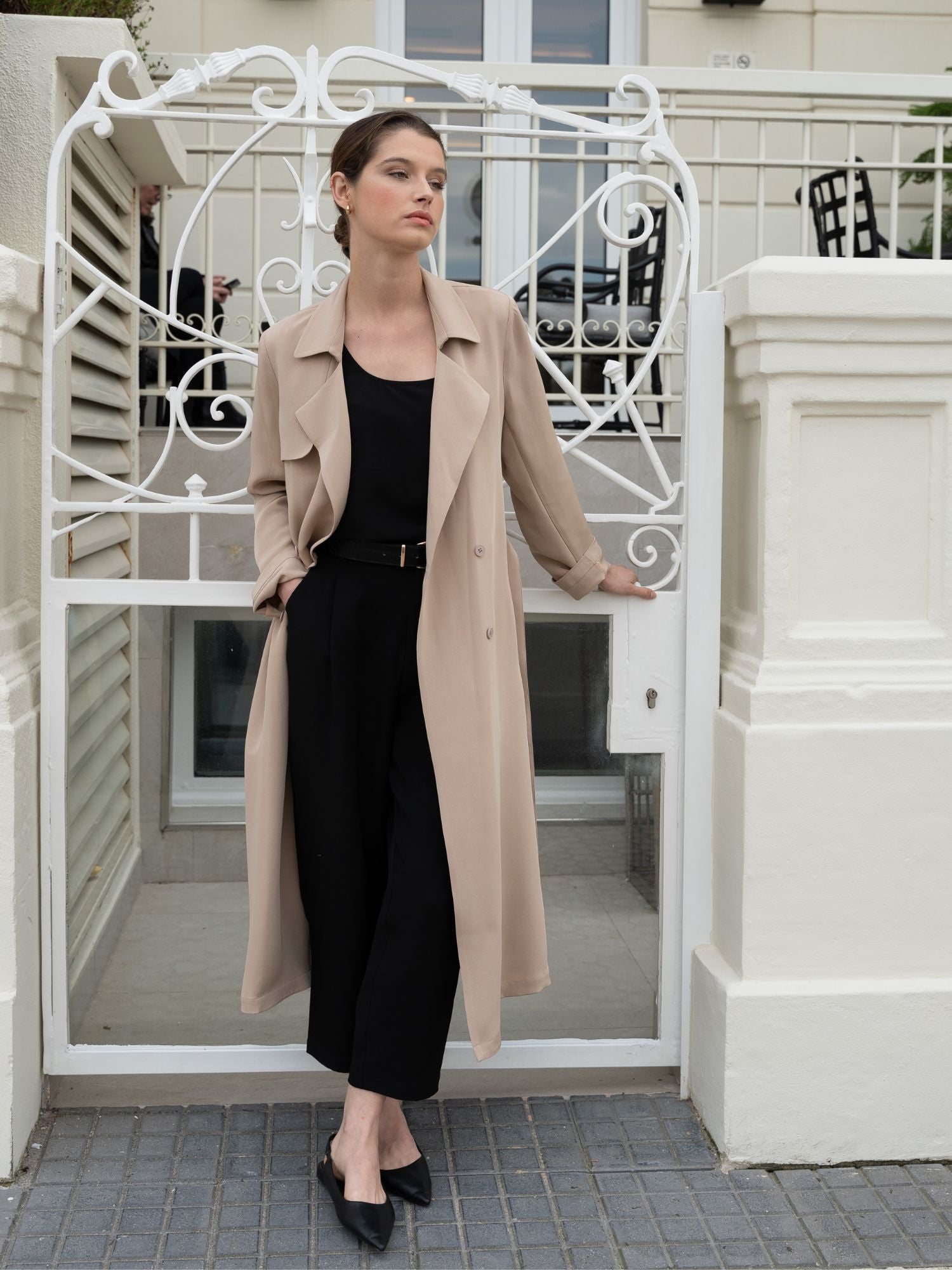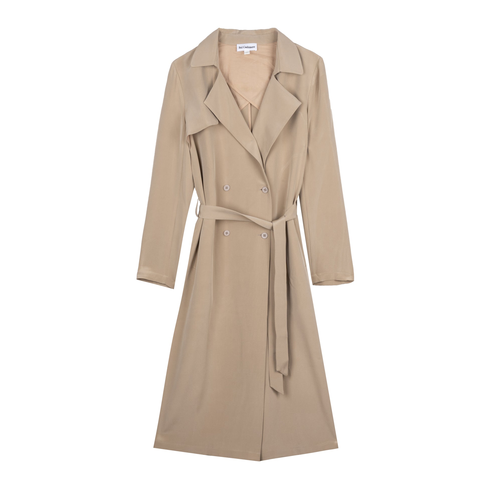 Dieser elegante und raffinierte Trenchcoat ist aus Crêpe de Chine aus reiner Seide gefertigt und sorgt für makellosen Fall und Bewegungsfreiheit.
