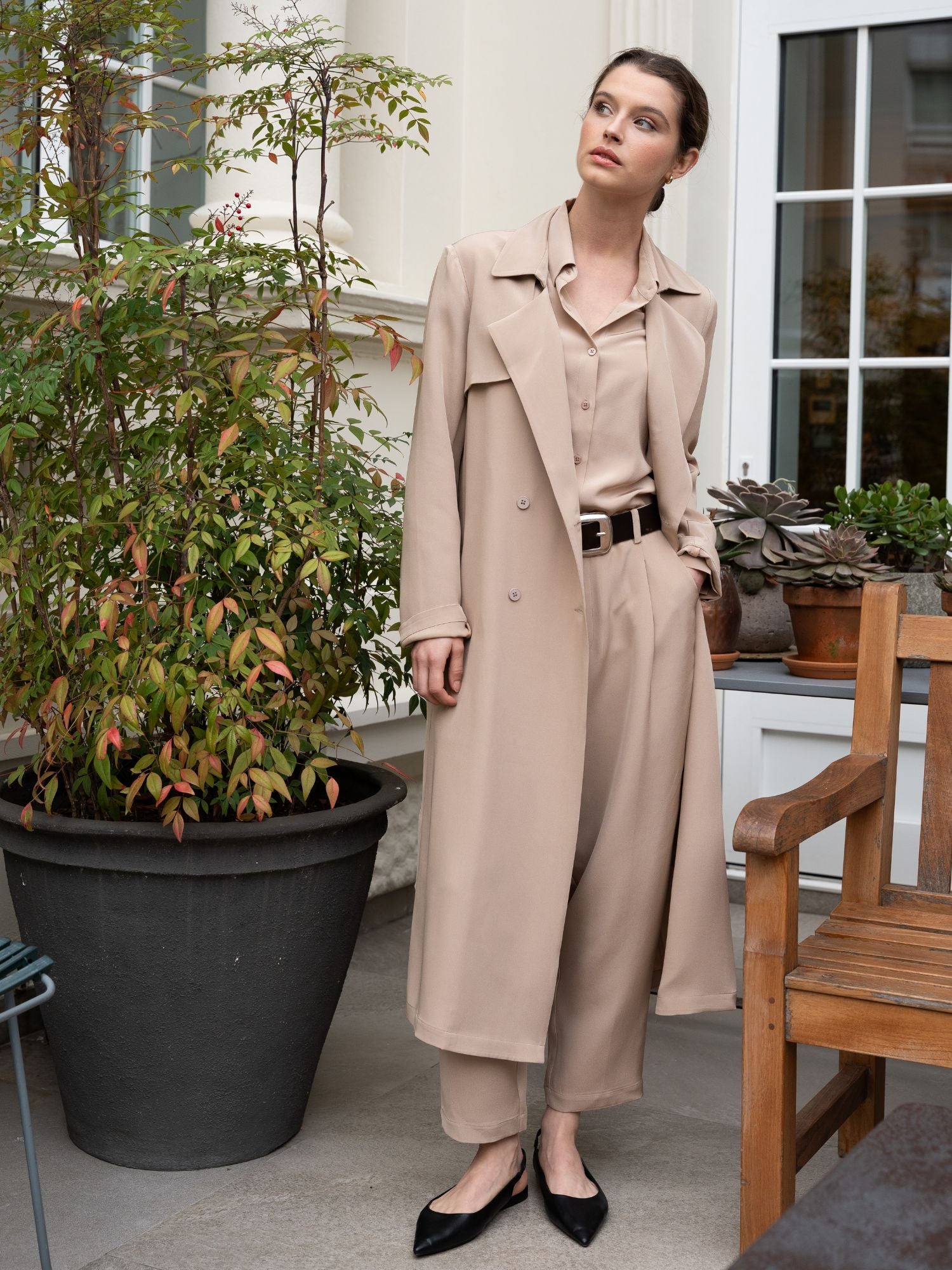 Langer Trenchcoat aus Seide