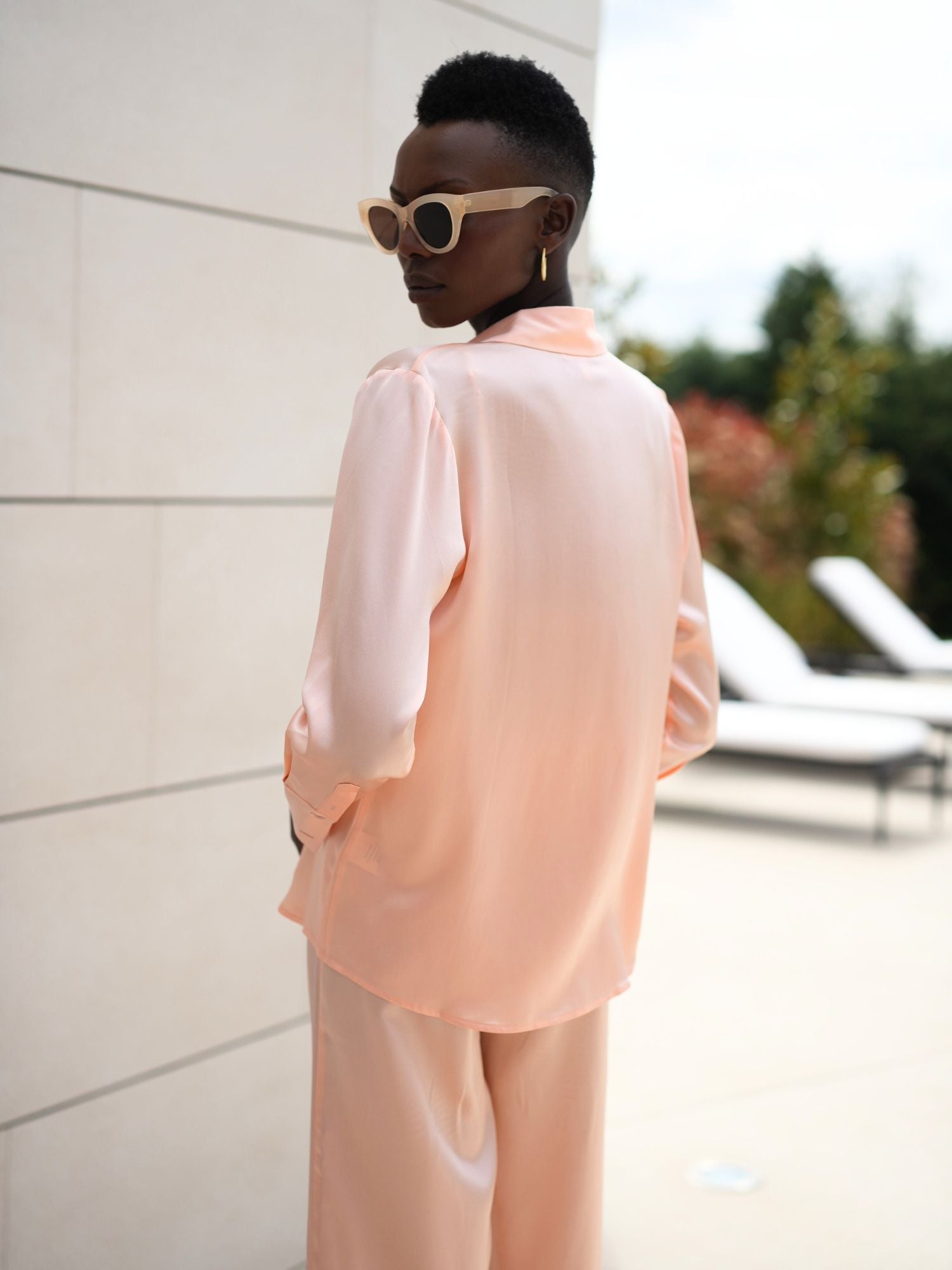 We recommend pairing it with the Jane pants or the Victoria skirt in the same peach tone.