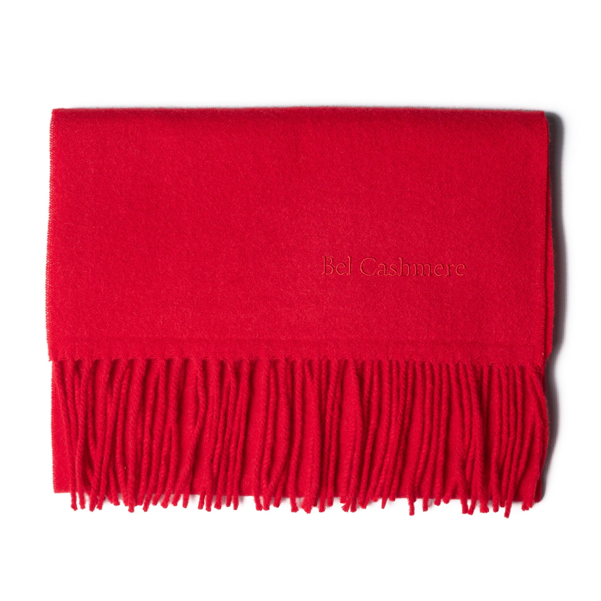 Red fringed cashmere scarf