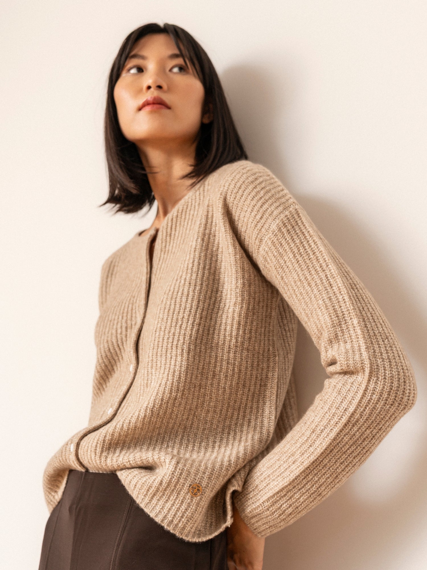 You can wear it as a cardigan, or you can turn it inside out and button it backward for a more sophisticated look.