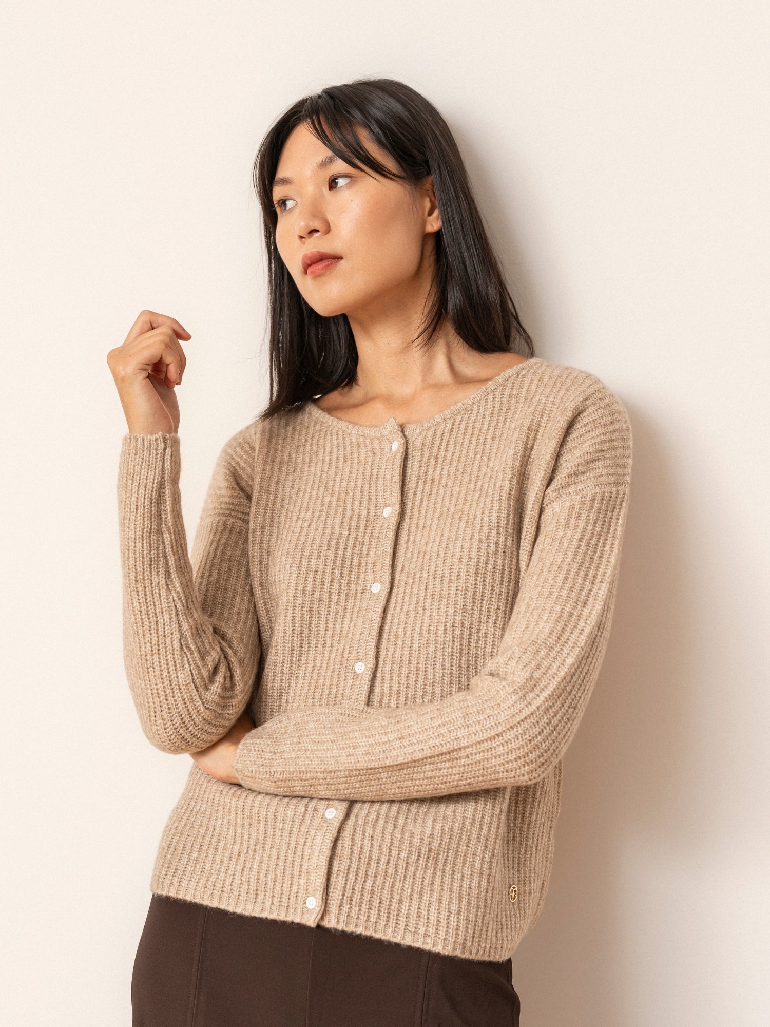 Crafted from a luxuriously soft and fluffy cashmere blend with silk, this is a stylish everyday cardigan that can be paired with any outfit in your wardrobe.