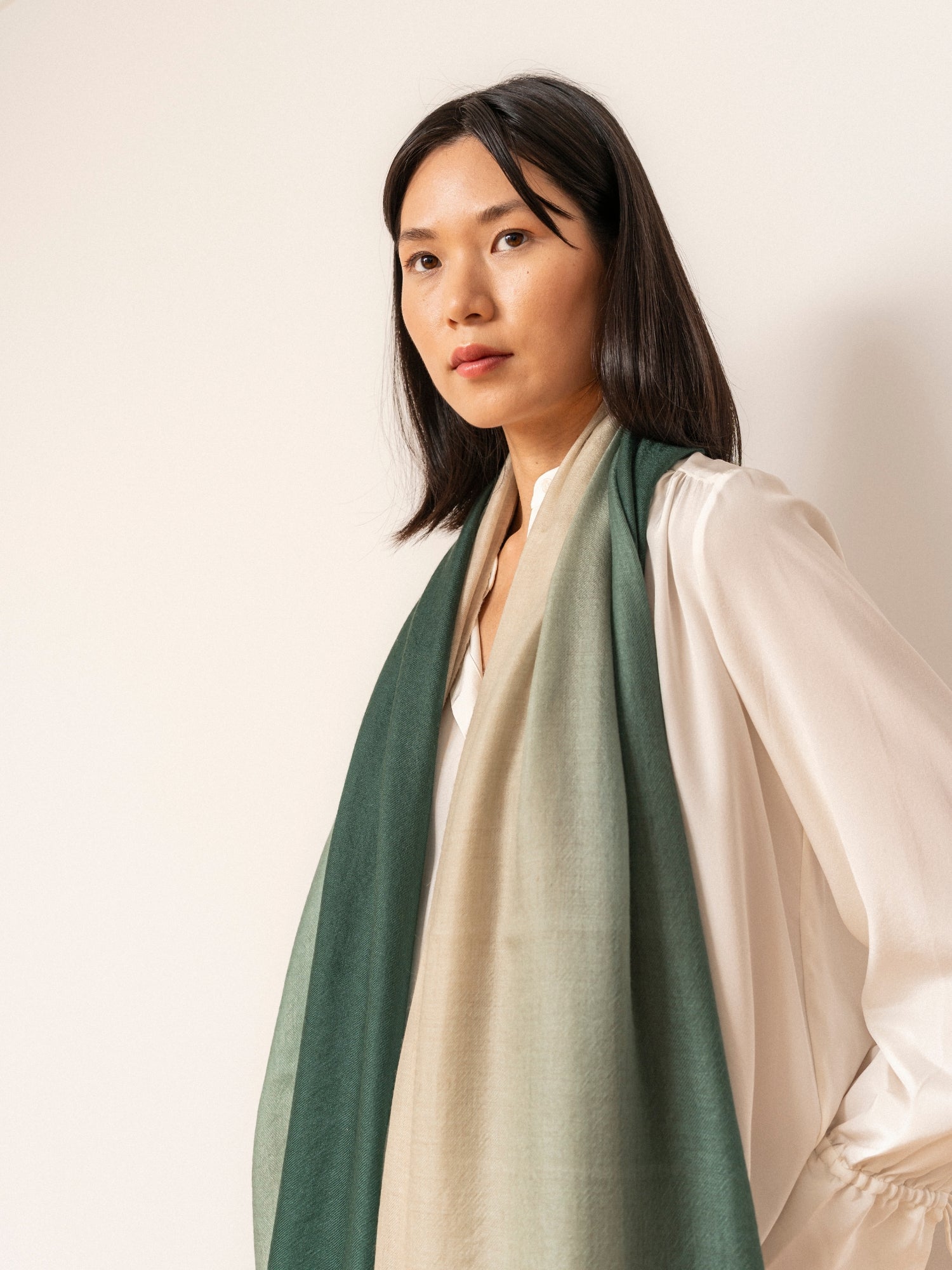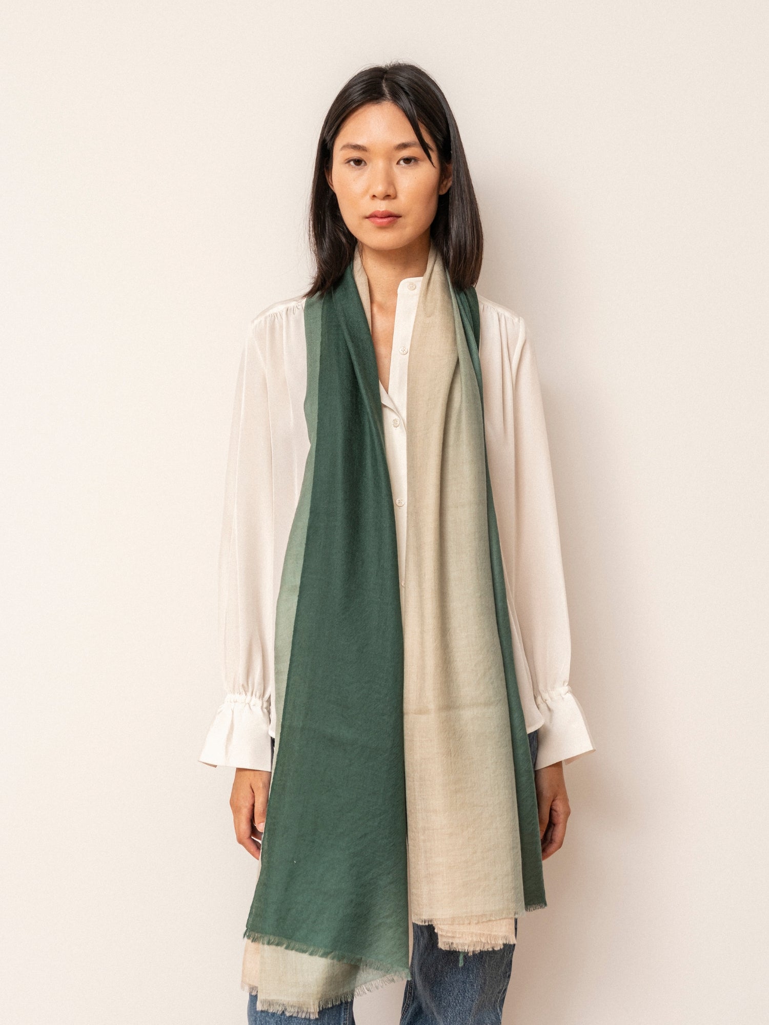 fine gradient green cashmere scarf
