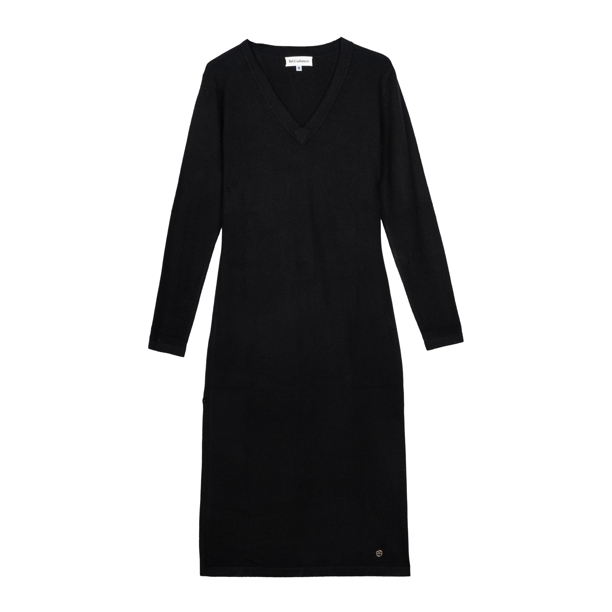 The Elisa dress, with a V-neck and cashmere knit, is fluid and enveloping. A garment that enhances the silhouette with refined comfort.