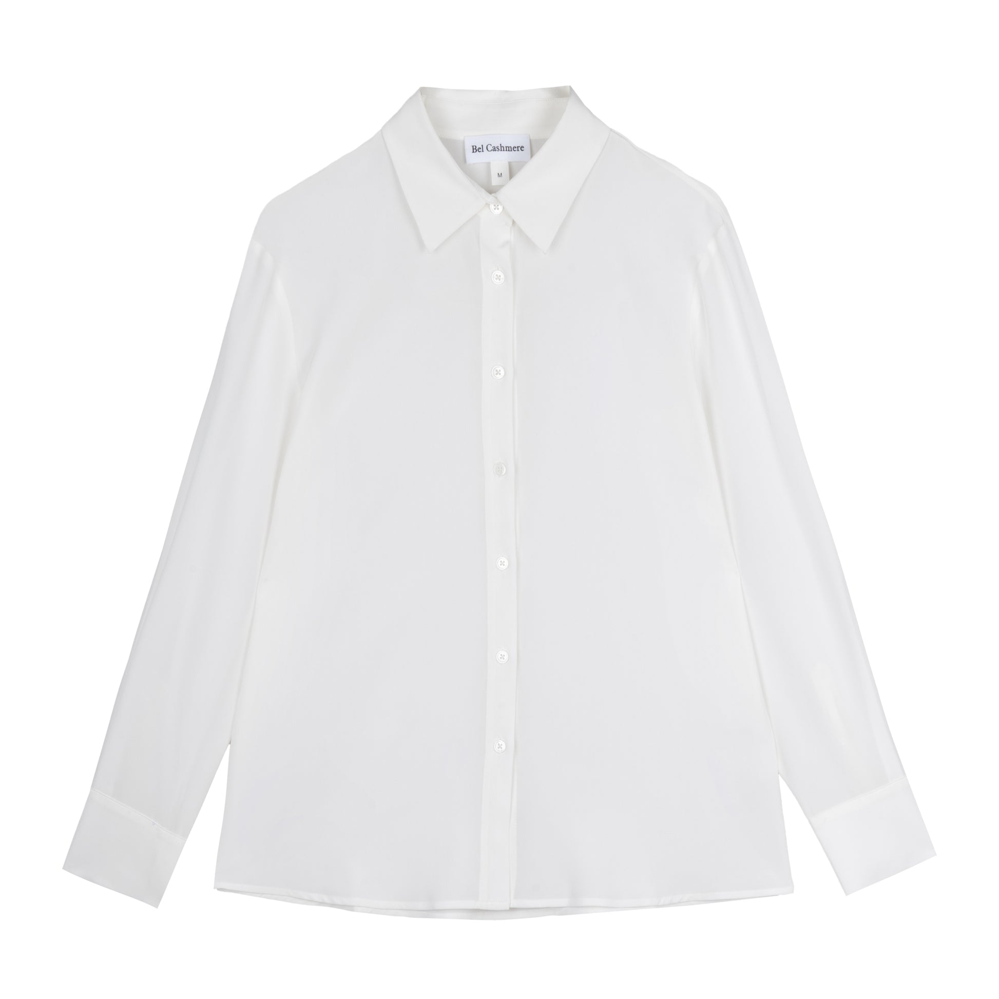 Una blusa impecable y favorecedora, confeccionada en crêpe de chine de pura seda.