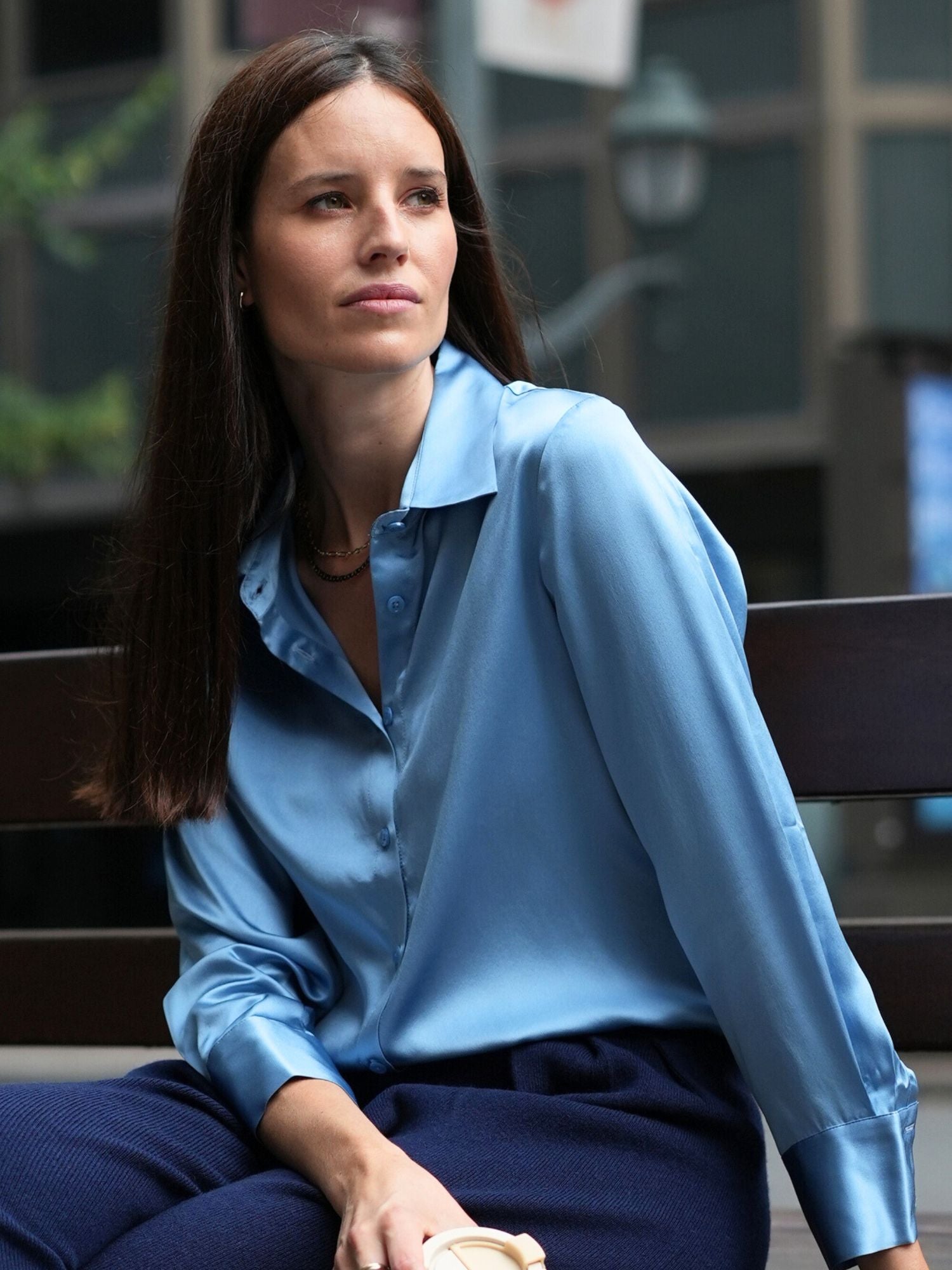 Blusa Diana de seda azul