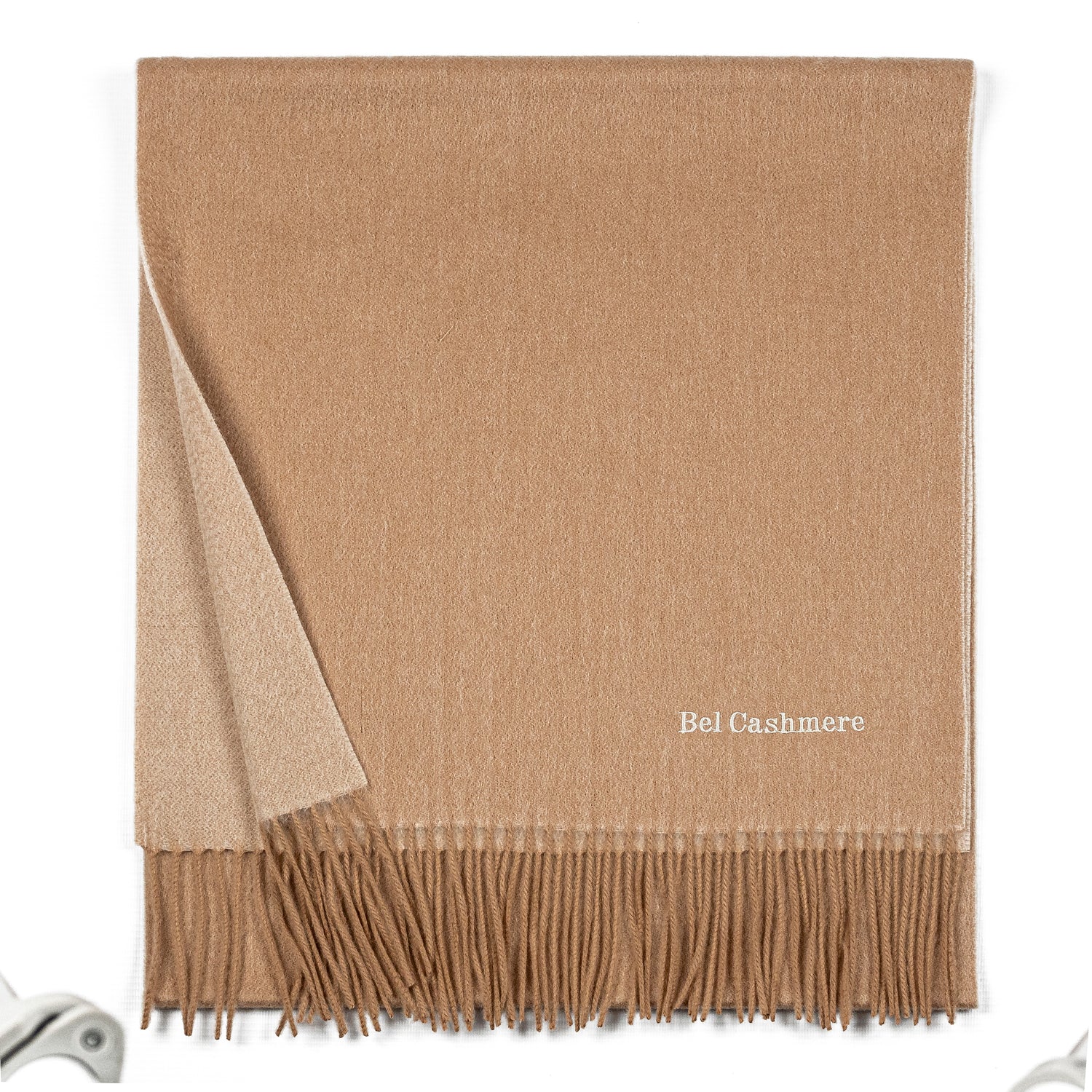 Bufanda de cashmere de doble faz camel y crema