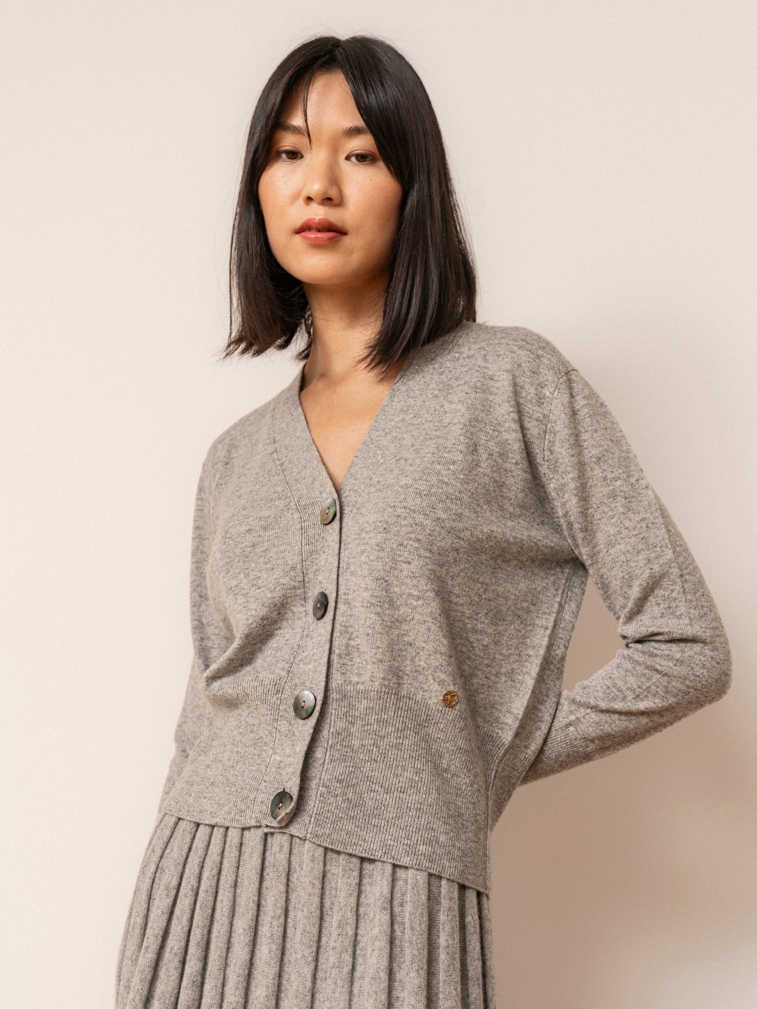 Chaqueta suave y lujosa confeccionada en punto de cashmere y lana. Su silueta ligeramente entallada en la cintura realza la figura, logrando un ajuste favorecedor. Un básico elegante y versátil que elevará cualquier look.