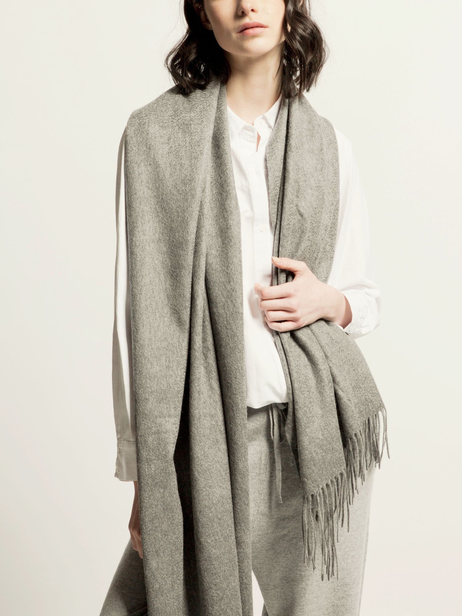 Increíblemente suave y cálida está prenda es muy ponible a lo largo de todo el año. En invierno puede llevarse como bufanda o como estola encima del abrigo y es perfecta sobre un blazer o una camisa en primavera y otoño.