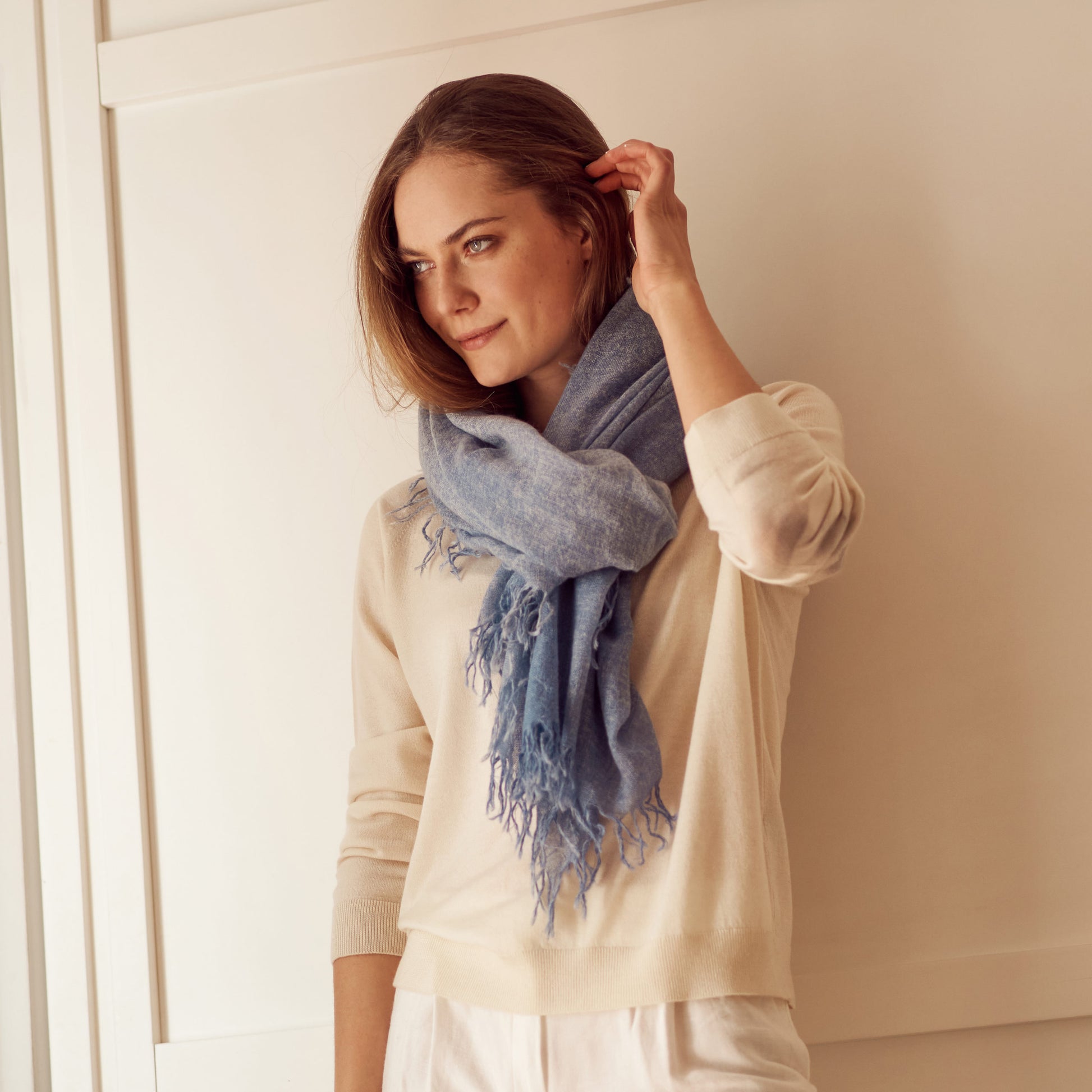 Confeccionado con puro cashmere este fular es fino, suave y muy ligero. Perfecto para combinar con cualquier look en cualquier época del año.