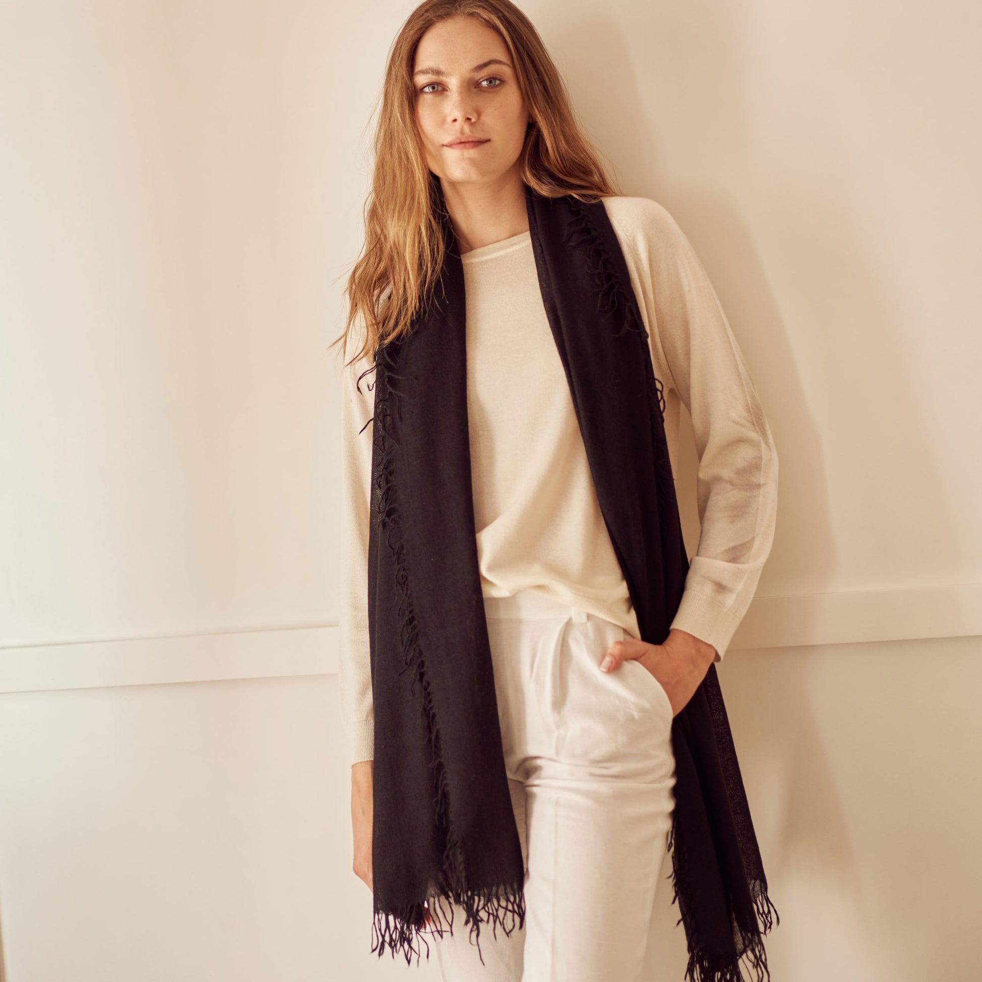 Confeccionado con puro cashmere este fular es fino, suave y muy ligero. Perfecto para combinar con cualquier look en cualquier época del año.