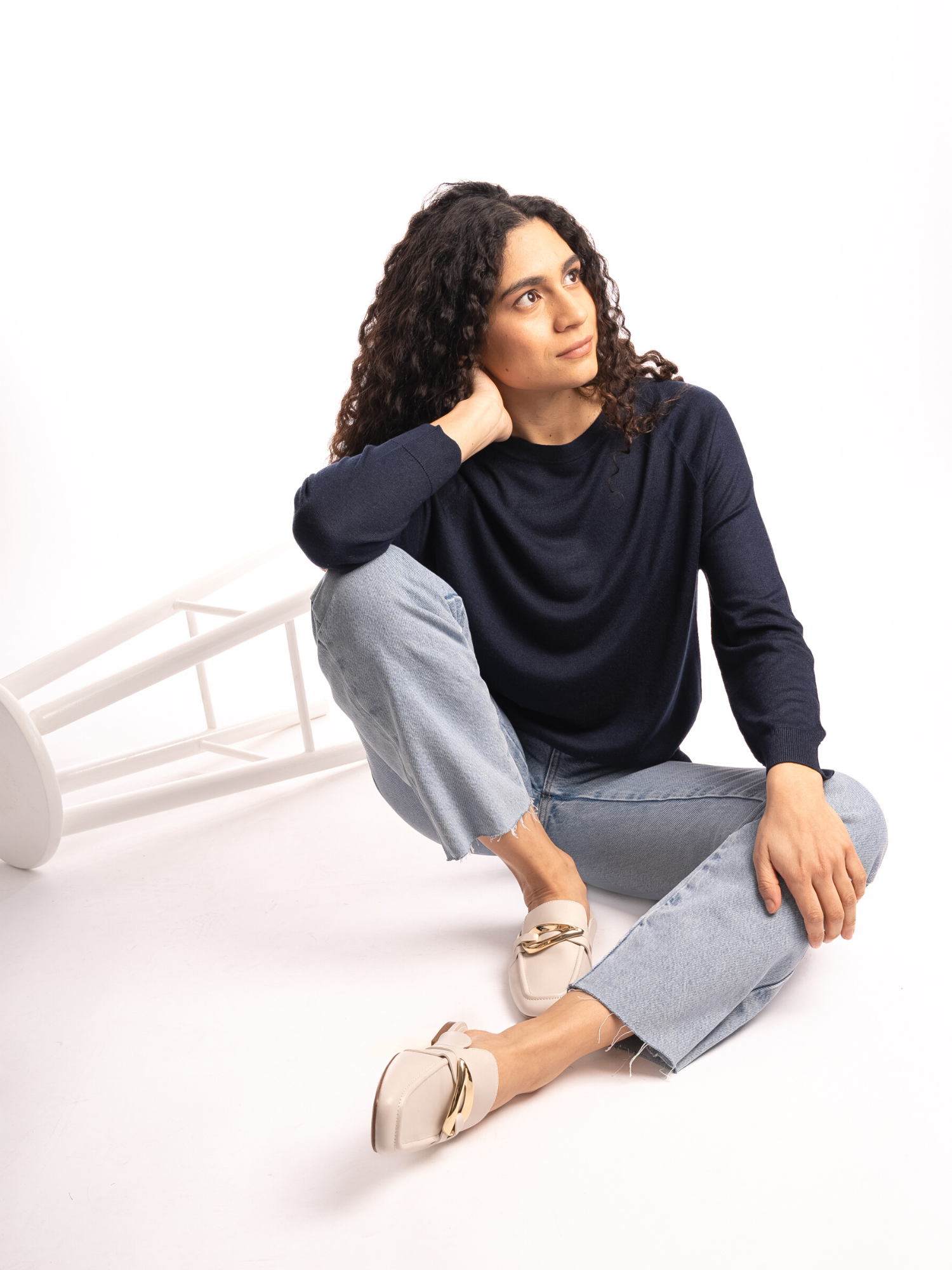 Con cuello redondo y marga ranglán es una prenda muy estilosa y básica, fácil de llevar y perfecta para cualquier época del año.