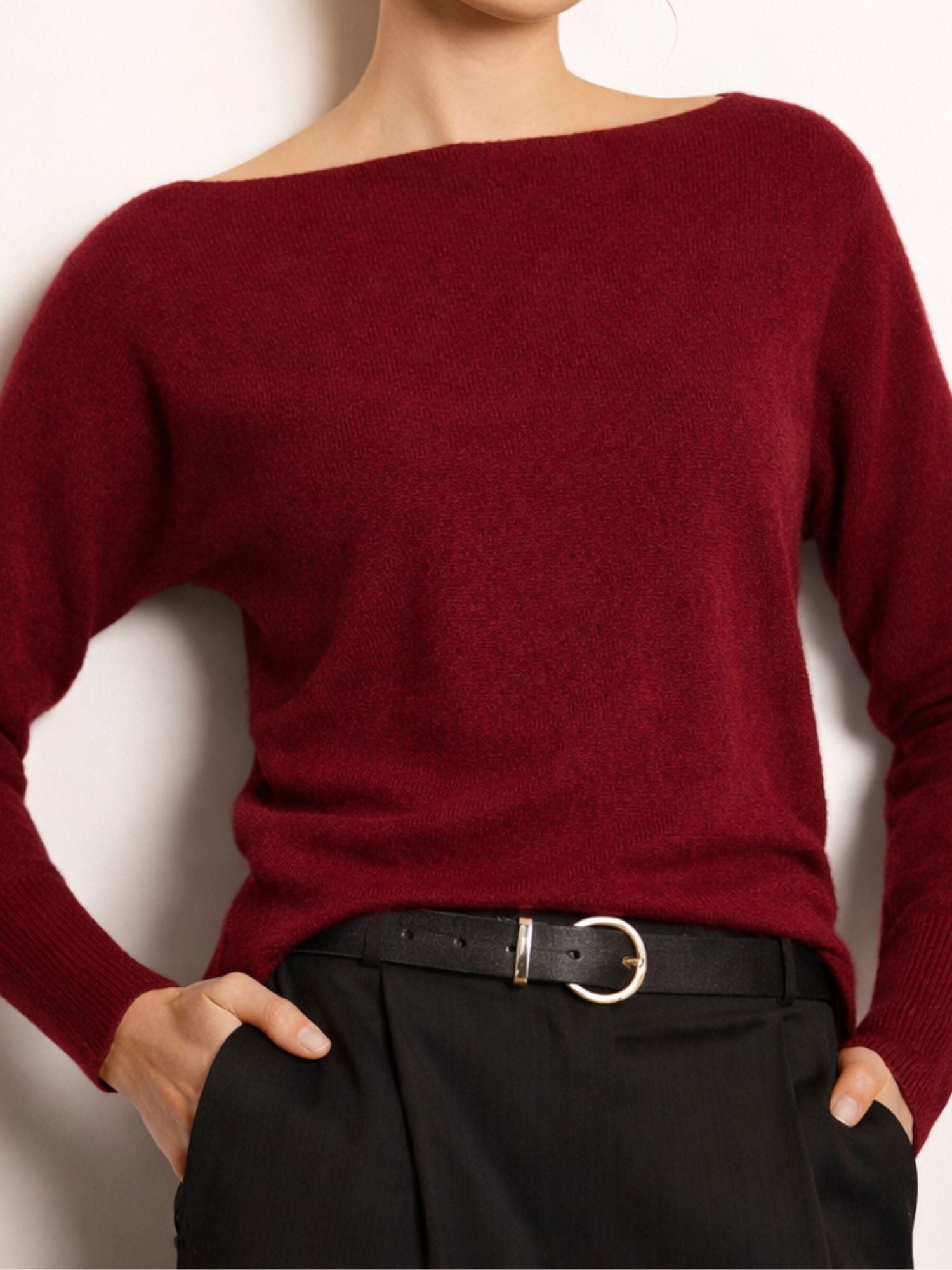 Un lujoso jersey con cuello tipo barco.