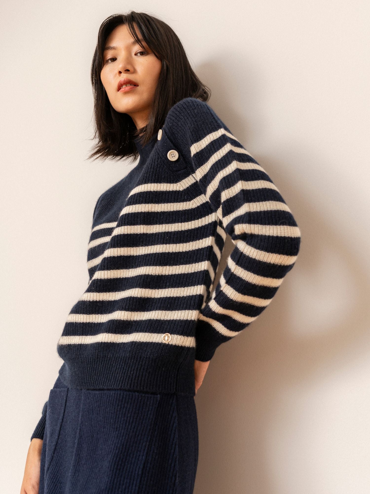 Un jersey de estilo marinero muy favorecedor, confeccionado con puro cashmere.