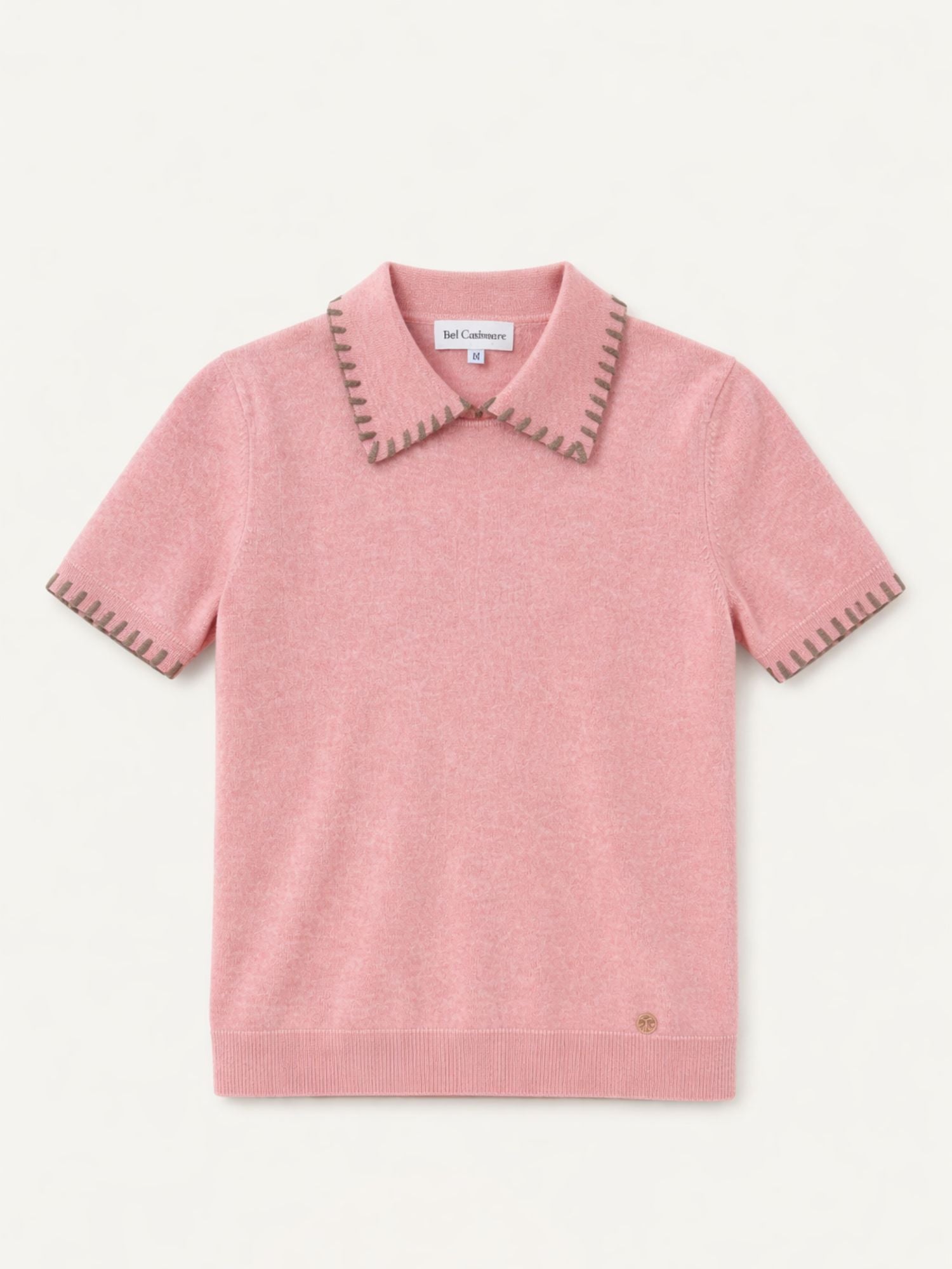 Jersey de manga corta en punto fino con cuello clásico y detalle de pespuntes en contraste en cuello y mangas. La silueta recta y el bajo acanalado equilibran su aire pulido con un sutil acento casual. Una pieza versátil que aporta personalidad a un armario de líneas depuradas.